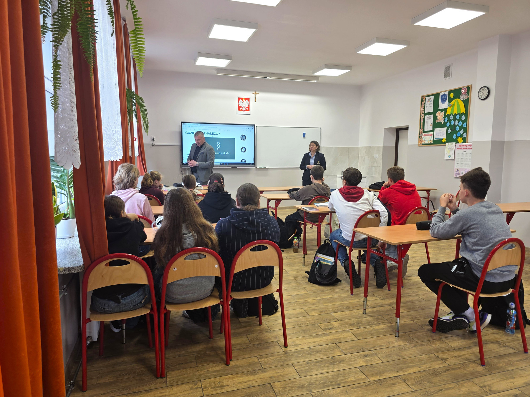 Na szkolnym korytarzu przygotowano gazetkę tematyczną, która prezentowała najważniejsze informacje dotyczące przeciwdziałania przemocy rówieśniczej, sposoby rozwiązywania konfliktów oraz zasady bezpiecznego i wspierającego funkcjonowania w grupie. Podczas godzin wychowawczych nauczyciele przeprowadzili zajęcia poświęcone rozpoznawaniu przemocy i sposobom reagowania na nią, zachęcając uczniów do refleksji nad własnym zachowaniem i postawami wobec innych. W czasie zajęć odczytano również listy MEN skierowane do przedszkolaków, uczniów, nauczycieli, które miały na celu uświadomienie znaczenia współpracy i wzajemnego wsparcia w budowaniu bezpiecznego środowiska szkolnego.