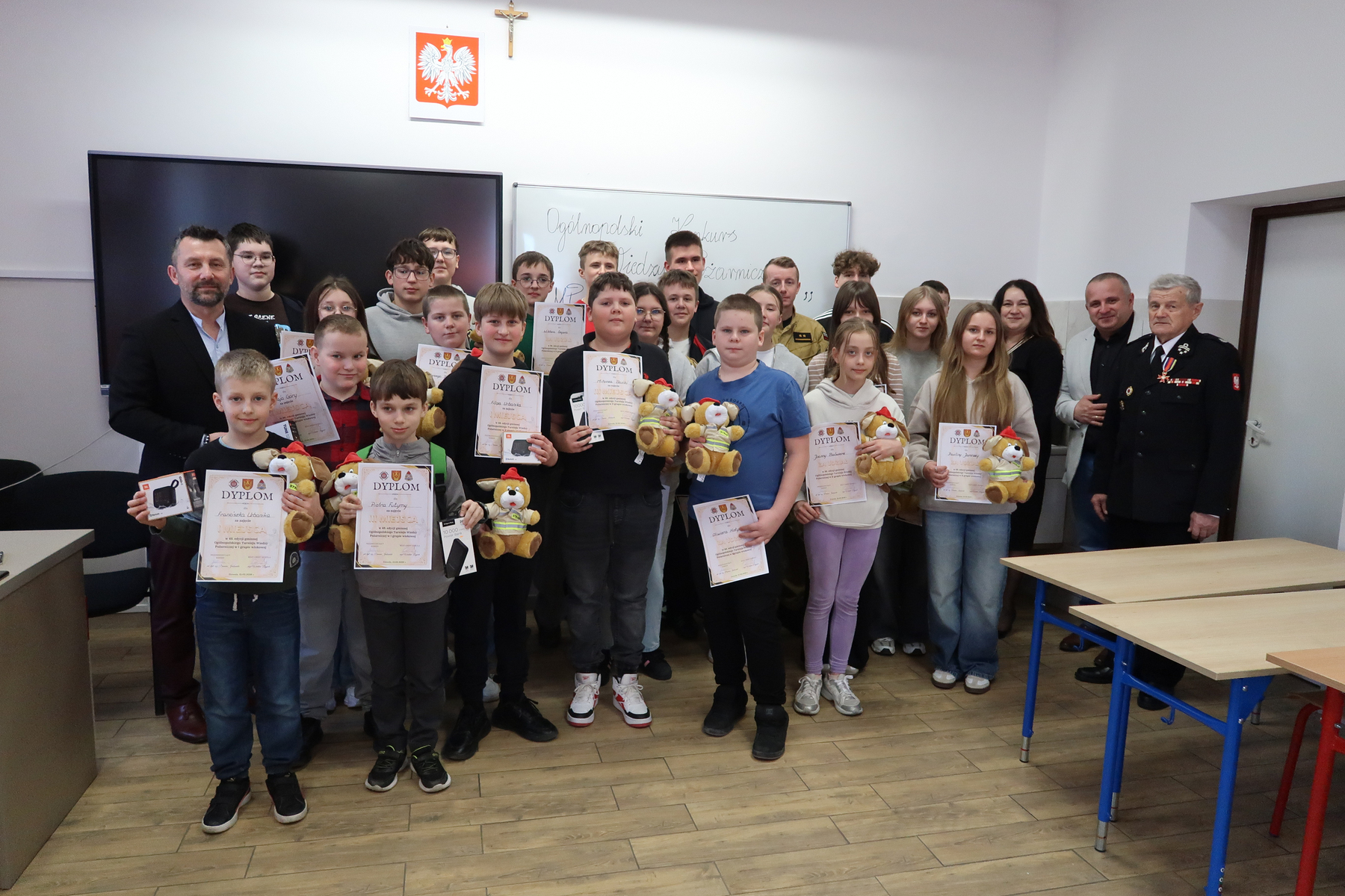 Nad prawidłowym przebiegiem konkursu czuwał funkcjonariusz Komendy Powiatowej Państwowej Straży Pożarnej mł. kpt. Damian Jaskowski. Nagrody i dyplomy wręczyli: Wójt Gminy Dzwola Wiesław Dyjach, Sekretarz Zarządu Oddziału Powiatowego ZOSP RP w Janowie Lubelskim Andrzej Bielak, Dyrektor Zespołu Szkół w Dzwoli Iwona Marchut oraz Komendant Gminny OSP Stanisław Dyjach. Zdjęcia