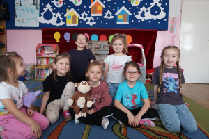 W ramach projektu „Nowoczesna edukacja – rozszerzenie oferty zajęć naukowo-dydaktycznych” w naszym przedszkolu realizowane są grupowe zajęcia rozwijające z języka francuskiego, skierowane do dzieci w wieku 3–6 lat. W projekcie uczestniczą 3 dziesięcioosobowe grupy, które regularnie biorą udział w zajęciach dostosowanych do ich wieku i możliwości. Głównym celem zajęć jest rozbudzanie zainteresowania językiem francuskim oraz rozwijanie kompetencji komunikacyjnych poprzez naukę podstawowych zwrotów i słownictwa. Zajęcia wspierają także prawidłowy rozwój mowy, percepcji słuchowej i artykulacji, wykorzystując różnorodne zabawy językowe. Dzieci uczą się współpracy w grupie, rozwijają koncentrację, umiejętność aktywnego słuchania oraz kształtują pozytywne nastawienie do nauki języków obcych. Podczas zajęć dzieci z dużym zaangażowaniem uczą się i śpiewają piosenki w języku francuskim, co dodatkowo wzmacnia ich motywację i naturalną radość z odkrywania nowego języka. Towarzyszy im również wyjątkowy gość – pacynka, małpka Charlotte, która zwraca się do dzieci wyłącznie po francusku. Charlotte stała się ulubioną bohaterką najmłodszych, a dzieci chętnie wchodzą z nią w dialog, wymieniając się poznanymi francuskimi zwrotami i utrwalając je w naturalny, swobodny sposób. Zajęcia przebiegają w atmosferze zabawy, ciekawości i otwartości, a dzieci z każdym tygodniem coraz śmielej posługują się językiem francuskim.